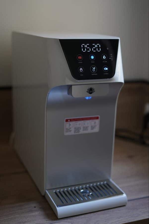 - Le bar à eau est équipé de 3 filtres de haute qualité qui éliminent 99.99% des impuretés et des contaminants présents dans l’eau, garantissant ainsi une eau propre et sûre à boire.